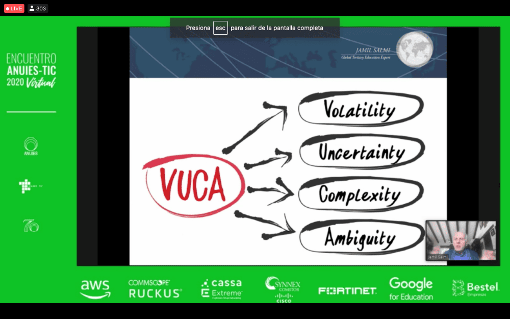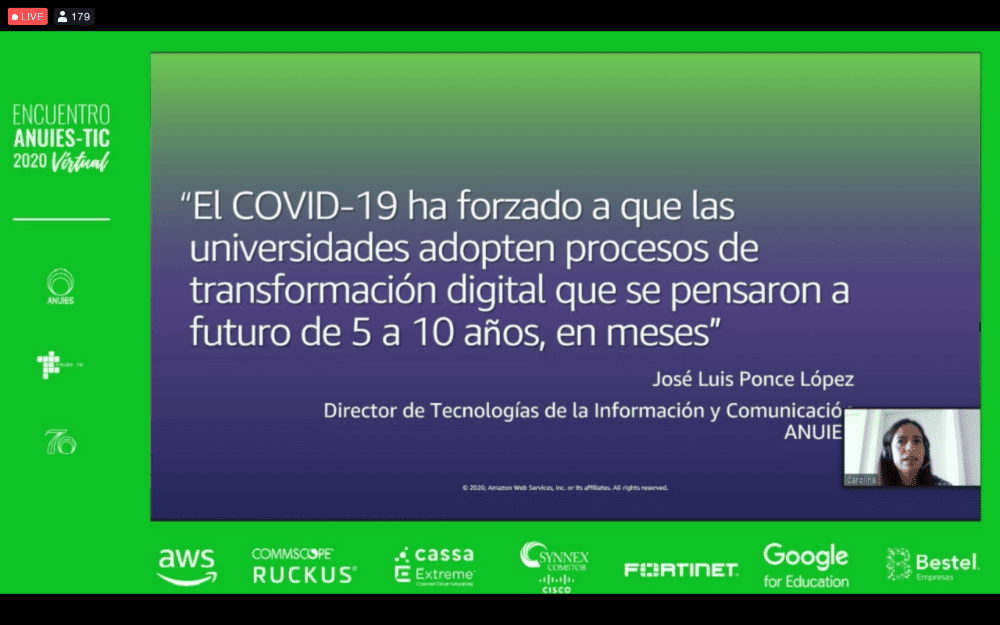 Debido a la situación sanitaria global, el Encuentro ANUIES-TIC se realizó de forma virtual en colaboración con la Universidad Veracruzana, abordando el tema de "La Continuidad Académica Digital en las Instituciones de Educación Superior".